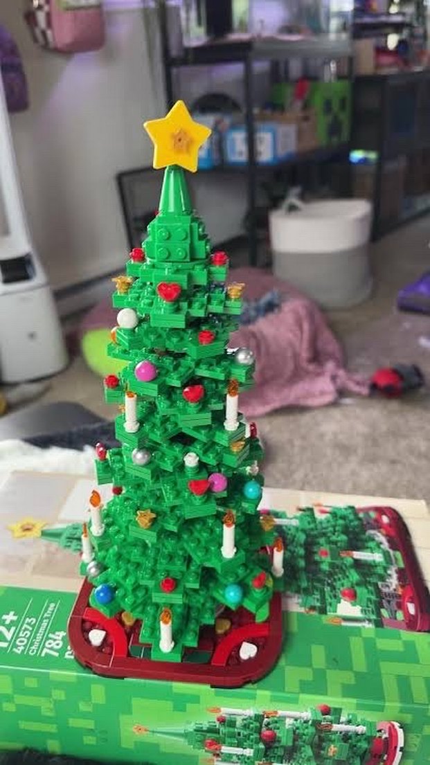 Yıldızlı tepe ve mum süslemeleriyle renkli Lego yılbaşı ağacı. Parçalarla oluşturulan yaratıcı ve şık bir yılbaşı dekoru .