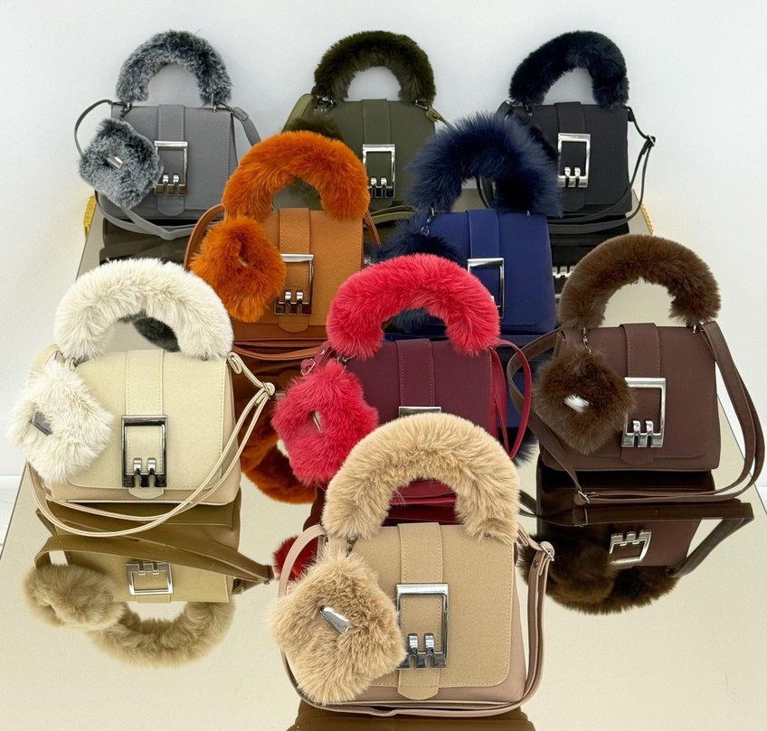 Renkli, leopar desenli, kürk detaylı ve yumuşak dokulu kadın çantaları. Sokak modasına uygun, günlük kullanıma ideal.