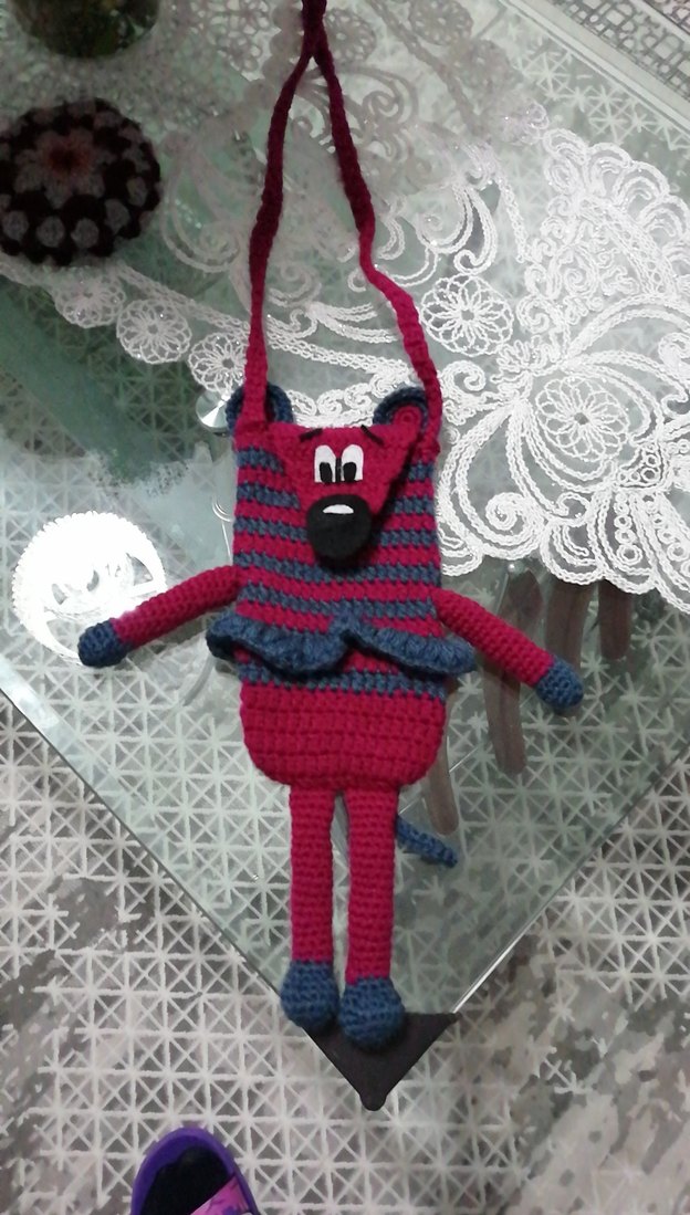 Renkli leopar desenli, bohem tarzda örgü kedi kıyafeti, özgün bir görünüm sunar.