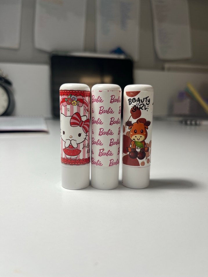 Üç farklı desenle renkli beyaz lipstick seti. Her biri eğlenceli ve canlı tasarımlara sahip, makyaj koleksiyonunuza renk katacak. Birisi eve marka. Ürünleri temizleyip göndereceğim. Hepsi bir arada 200tldir