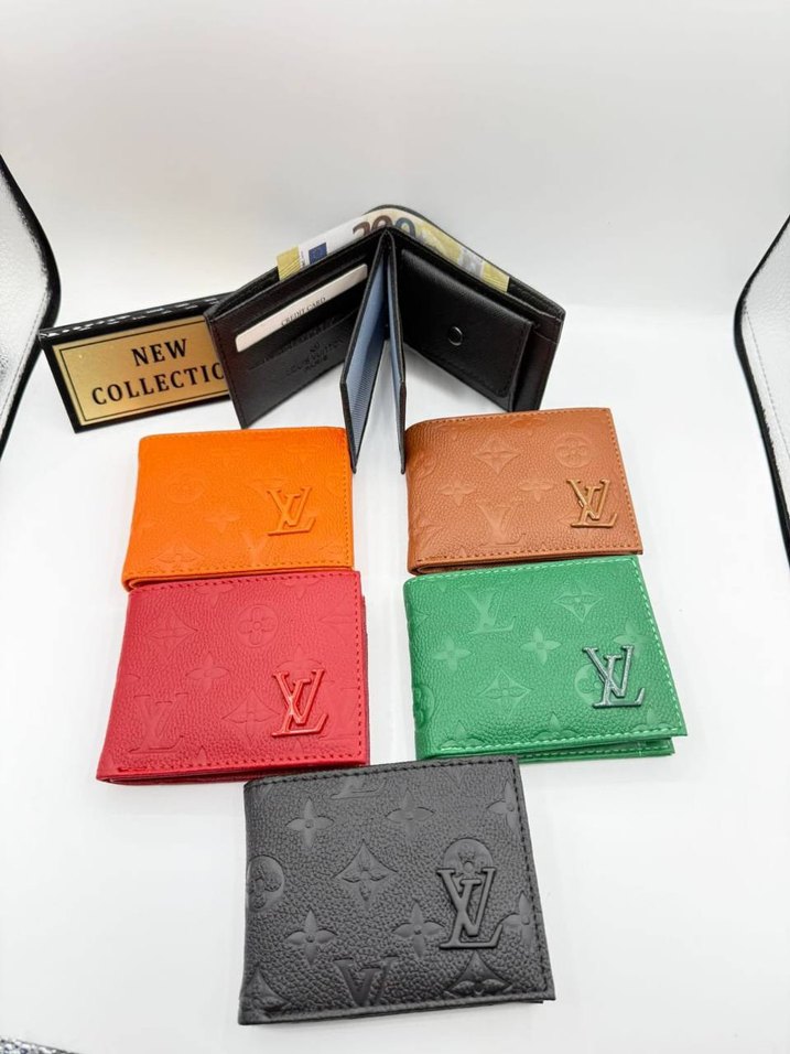 Renkli baskılı desenlere sahip Louis Vuitton erkek cüzdanları, kart ve nakit için çok bölmeli tasarım. Paris sokak tarzından ilham alınmıştır.