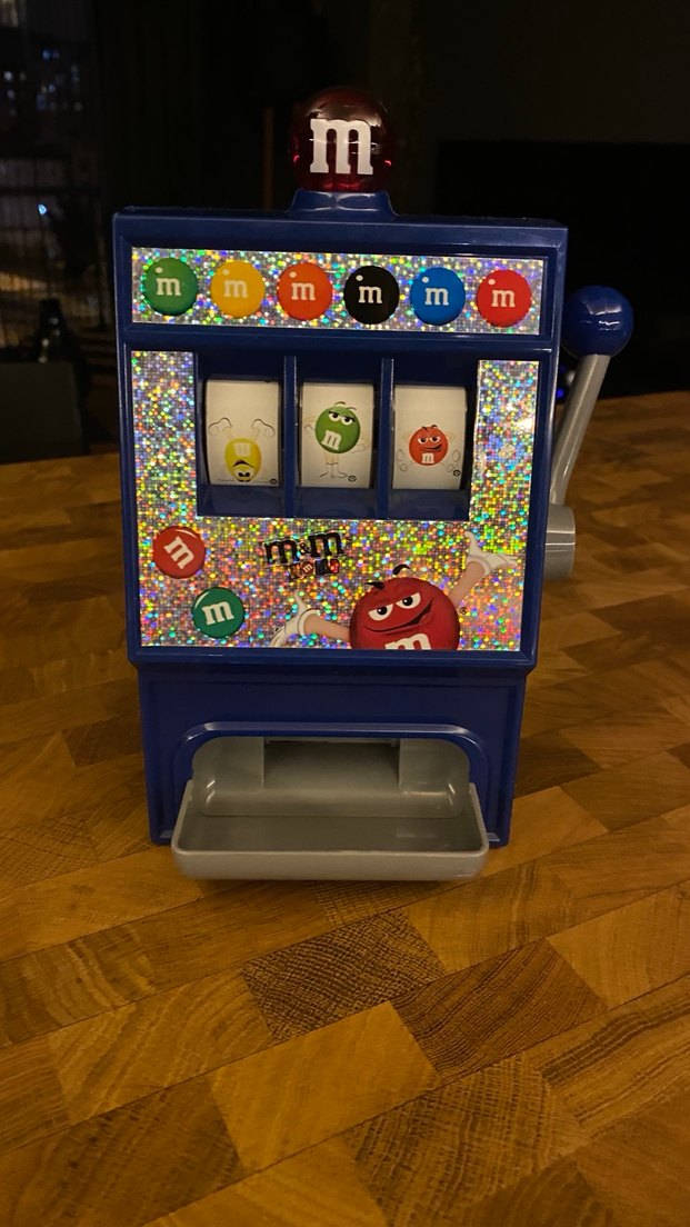 Renkli M&M's temalı slot makinesi oyununda kolu ve gösterge pencereleri bulunur. Canlı M&M's karakterleri ve parlak yüzeye sahiptir. Pilli ve pilsiz olarak çalışır pilsizken sadece üstteki ışığı yanmaz ve müzik sesi çıkarmaz. #slotmakinesi #slot #şekermakinesi #m&m’s #oyuncak #çocuk #eğlence #parti #party
