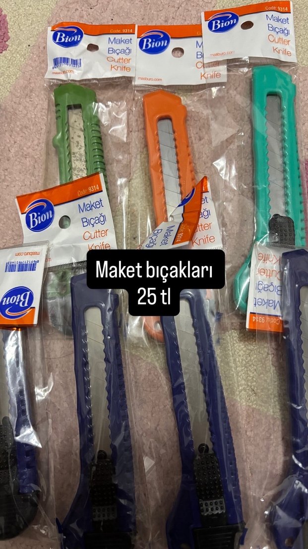 Renkli plastik maket bıçakları, güvenli tutuş ve değiştirilebilir bıçaklara sahip. 25 TL fiyatla satılmaktadır. Hassas kesim işleri için uygundur. ️