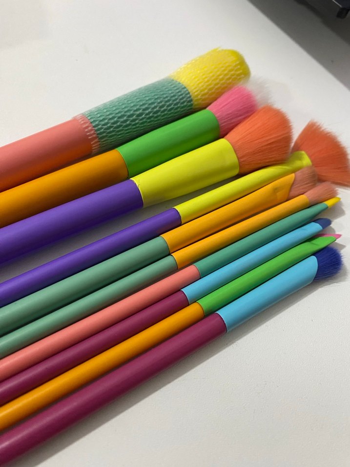 Yumuşak kıllara sahip, farklı boyutlarda renkli makyaj fırçaları. Canlı renklerde rahat saplar içerir. Hiç kullanılmadı indirim yaparım hayırlı olsun şimdiden