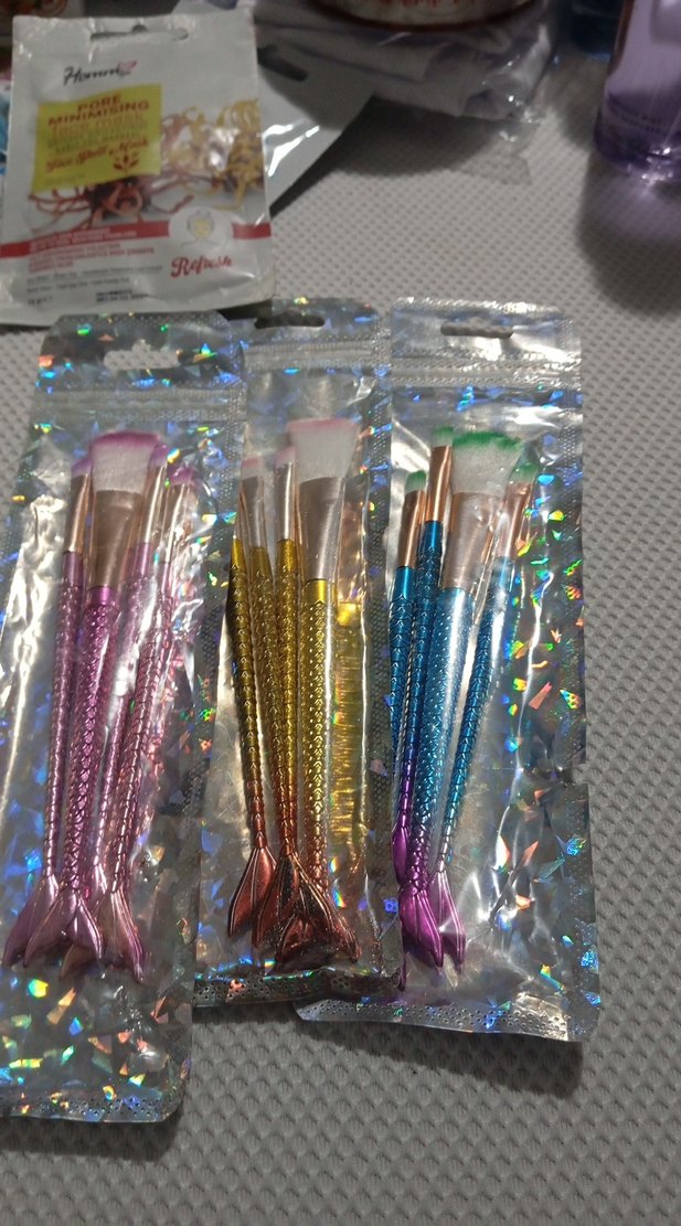 Bu sette, açık tonlarda denizkızı tarzı saplara sahip renkli makyaj fırçaları bulunur. Fırçalar, çeşitli kozmetiklerin uygulanması için yumuşak kıllıdır. ️