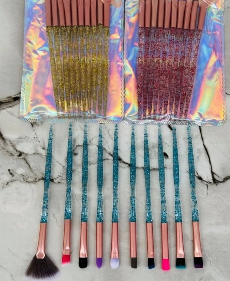 Yumuşak kıllı, parlak saplı çeşitli renkli makyaj fırçalarından oluşan set, detaylı makyaj için uygundur.