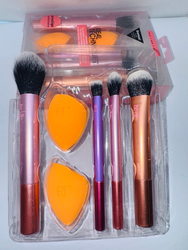Yumuşak kıllı çoklu makyaj fırçaları ve pürüzsüz uygulama için iki turuncu makyaj süngeri içerir. Renkli saplara sahiptir. ️