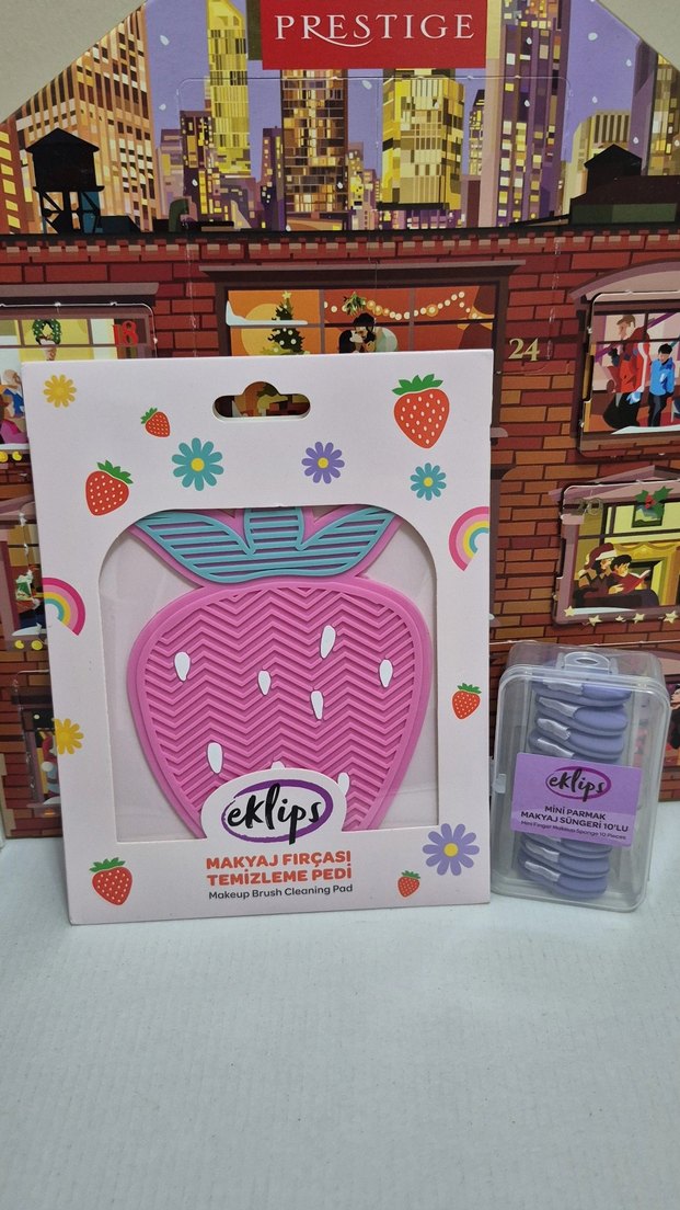 Çilek desenli pembe makyaj fırçası temizleme pedi ve mini fırça seti, kolay ve etkili temizlik sağlar. Renkli ve yumuşak dokulu.