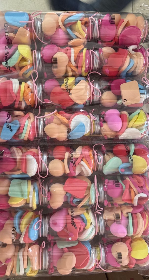 Çeşitli şekillerde, renkli makyaj süngerleri seti. Yumuşak yapısıyla makyaj uygulamasını kolaylaştırır.