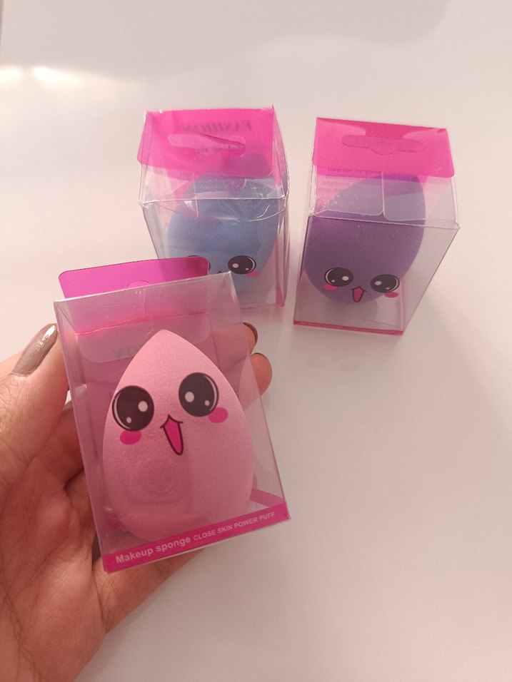 Mor renkli, sevimli yüz tasarımlı makyaj süngeri. Yumuşak yapısıyla pürüzsüz makyaj sağlar.