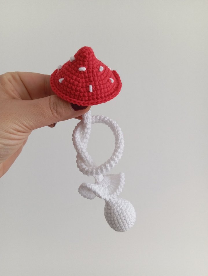 Yumuşak örme dokulu, mantar şeklinde tamamen el örgüsüdür.