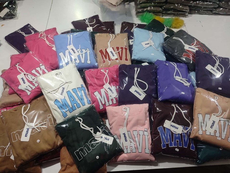 Renkli baskılı, kapüşonlu unisex erkek kadın sweatshirt. Bol kesim. 3 iplik Önünde 'MAVİ’ baskısı mevcut