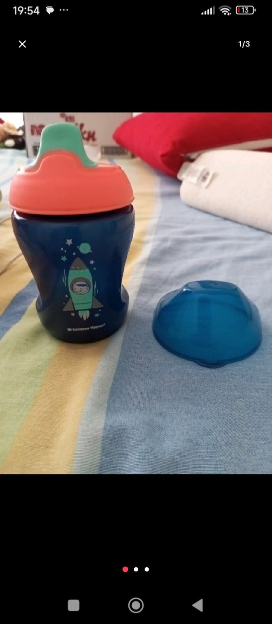 Renkli, uzay temalı desenli mavi bebek suluğu, yumuşak turuncu emzik ve yeşil uçlu. Mavi kapaklı ve çıkarılabilir. tutma aparatı yok.tommee tipper marka.sağlam.çok az kullanıldı.1 yada 2 defa