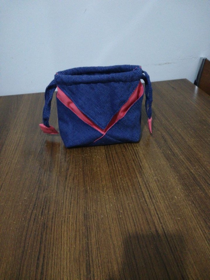 Renkli mavi ve pembe detaylara sahip, desen içermeyen yumuşak kumaştan çocuk çantasıdır. Yan bağcıkları bulunur.