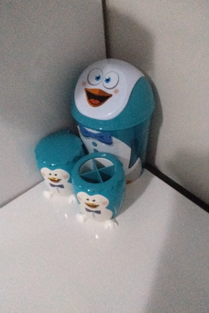 Renkli mavi renkte, eğlenceli karakter desenli üç parçalı çocuk kalemlik seti, kalem ve kırtasiye düzenlemek için uygun. ️