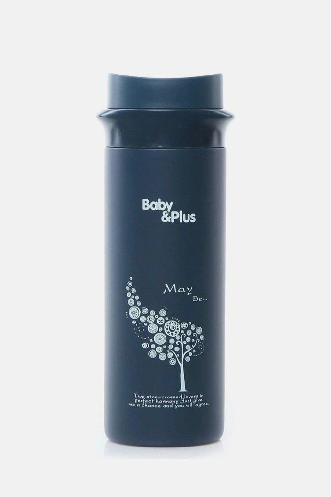Baby & Plus markalı, ağaç desenli renkli mavi çocuk termos şişesi. İçecekleri sıcak tutmak için uygundur.
