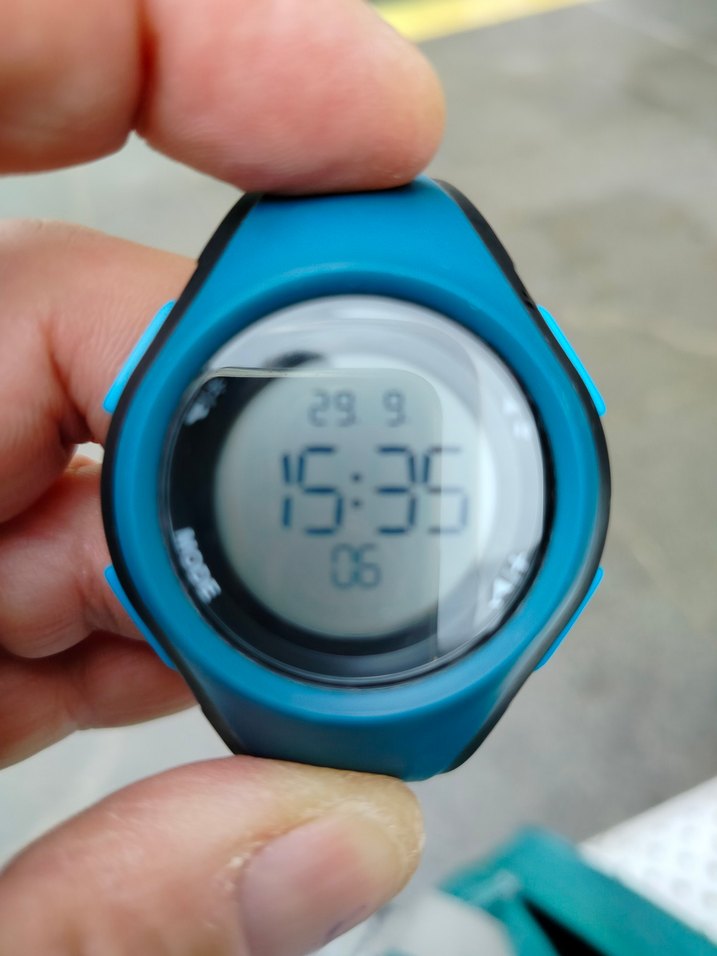 Renkli mavi dijital erkek saat, net ekranında saat, tarih ve ek bilgiler gösterir. Spor ve rahat athleisure tarzına uygundur. ⌚