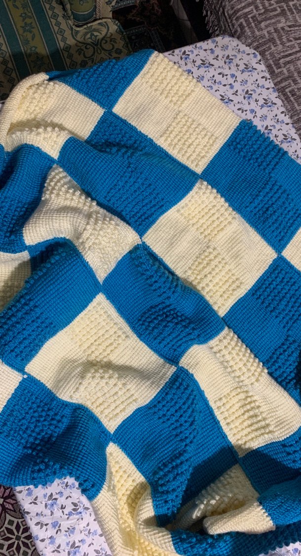 Renkli Mavi Ekose Örgü Çocuk Battaniyesi