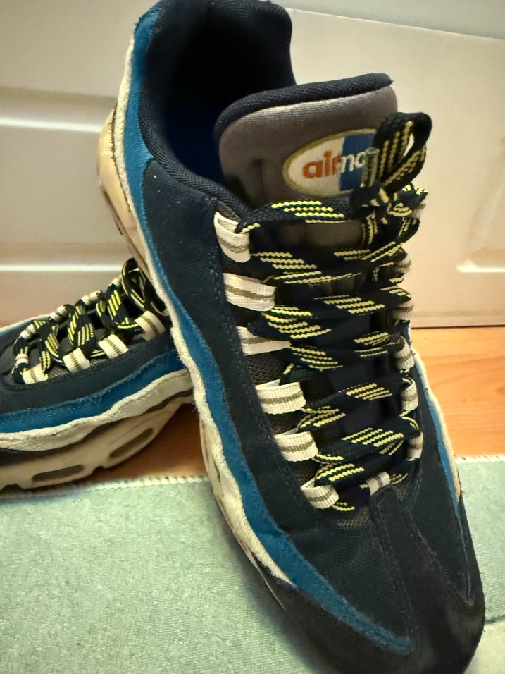 Erkek spor ayakkabıları için renkli mavi bağcıklar, athleisure tarzına canlılık katar.