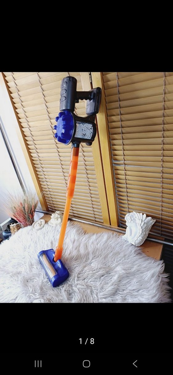 Mavi ve turuncu renklerde, kablosuz, elde tutulan sapı ve çıkarılabilir toz haznesi olan renkli süpürge. alan kisiye hayırlı olsun resimde görüldüğü gibidir ölçüleri bellidir her tarafını çekmeye çalıştım
