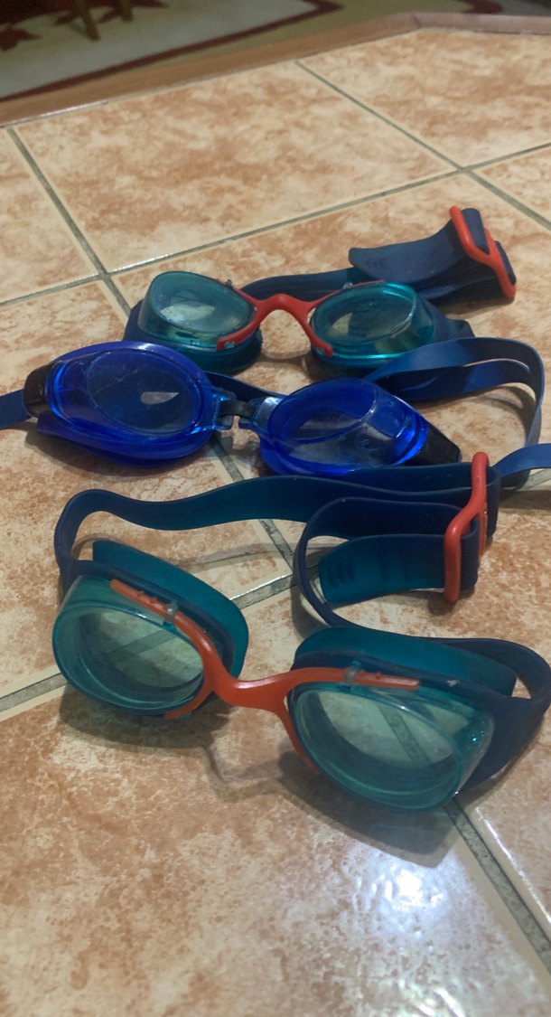 Renkli mavi, kayışlı yüzücü gözlükleri, plaj kullanımı için rahat oturan minimalist ve uyumlu tasarım. ️