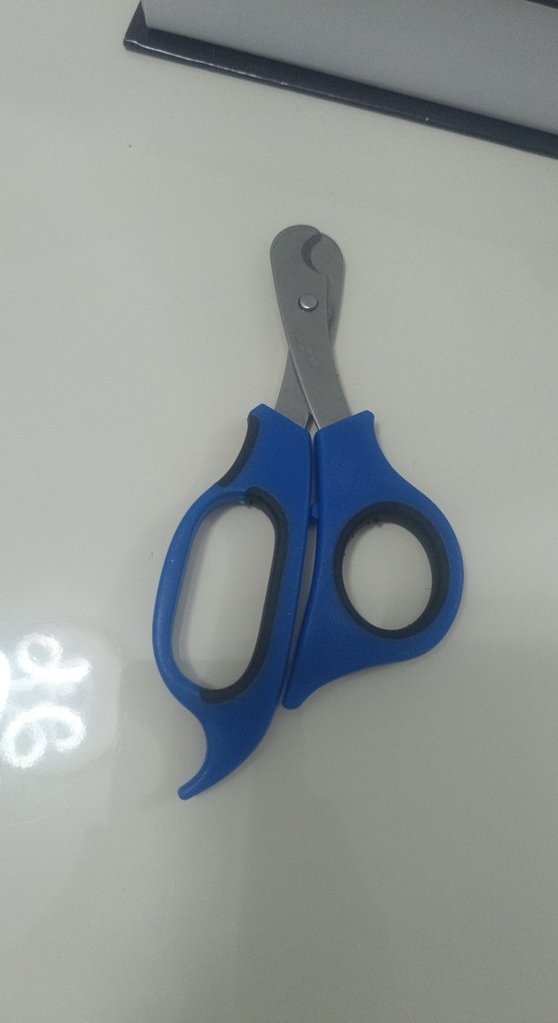 Renkli mavi tırnak makası, eğimli paslanmaz çelik bıçak ve ergonomik tutacaklarla güvenli ve rahat kesim sağlar.