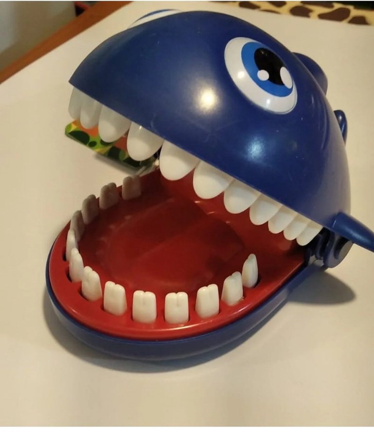 Büyük beyaz dişlere ve geniş açık ağıza sahip renkli mavi köpekbalığı oyuncak. Çılgın Köpek balığı Dişçide oyunu, çocukları çılgın köpek balığının diş ağrısına karşı dikkatli olmaya zorlar. Bir dişe bastıklarında, eğer ağrıyorsa ağzını anında kapatıp elinizi acıtacak ve o oyuncuyu oyundan çıkaracaktır. Çocukların, hafıza ve gözlem yeteneğini destekler, kişisel sosyal yeteneklerini artırır ve dikkat gelişimlerini sağlar. 2-4 oyuncu ile birlikte oynanabilir.