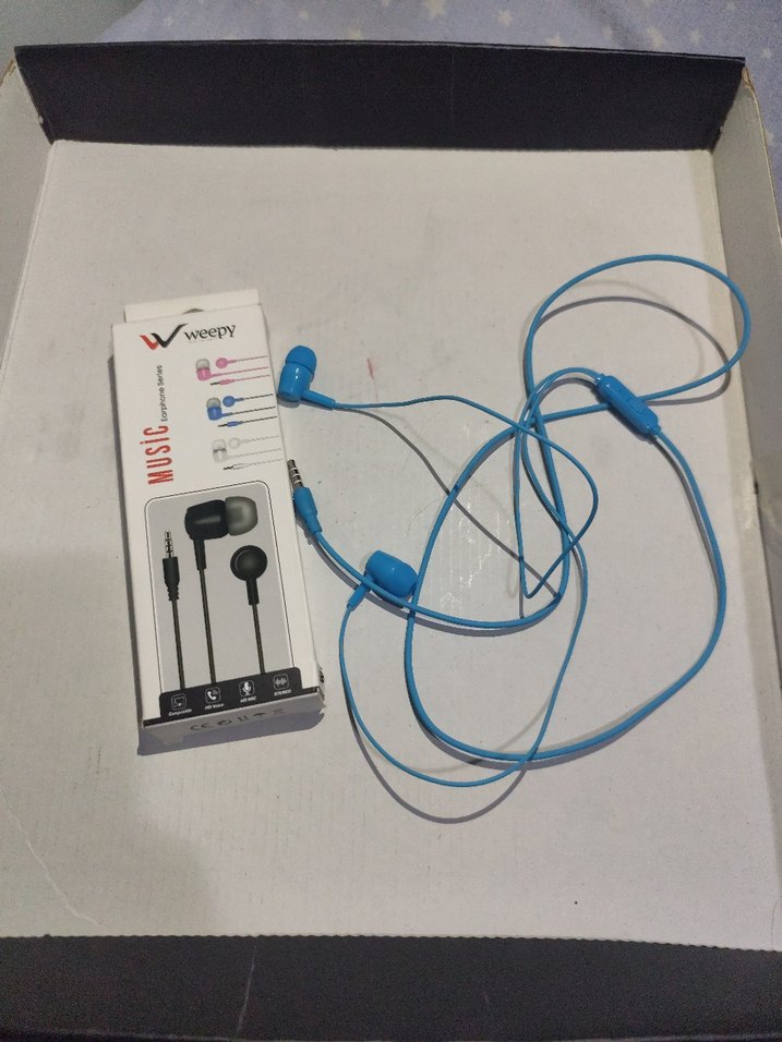 Renkli mavi kulak içi kulaklıklar, rahat kullanım ve net ses sunar. Dahili mikrofon ile eller serbest görüşme sağlar.