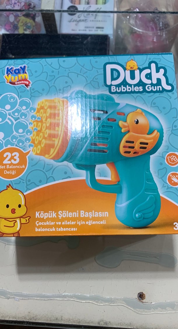 Renkli mavi ördek şeklinde, 23 delikli köpük tabancası. Çocuklar ve aileler için eğlenceli baloncuk oyunu başlasın