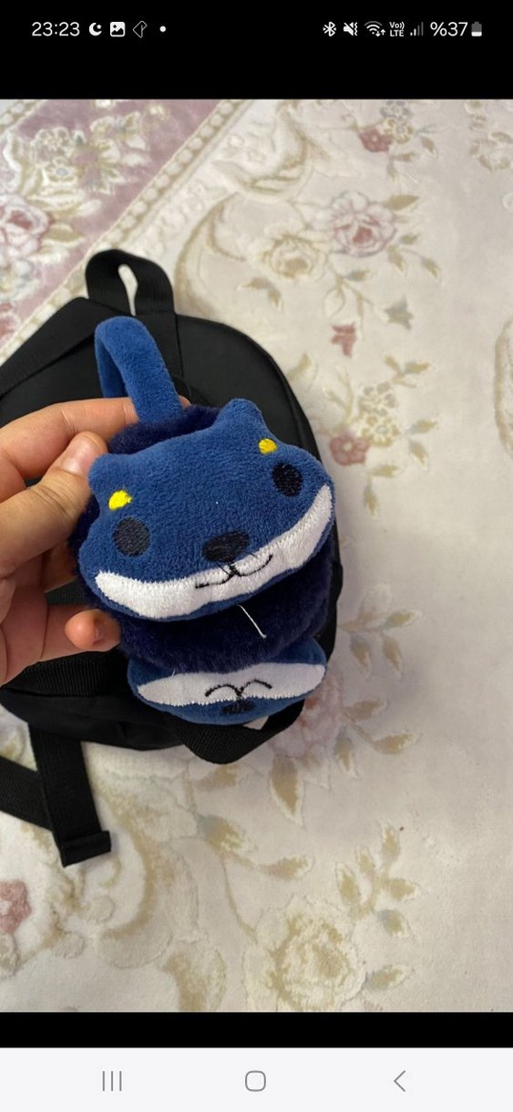 Gülümseyen yüzü ve yumuşak dokusuyla renkli mavi peluş kulaklik