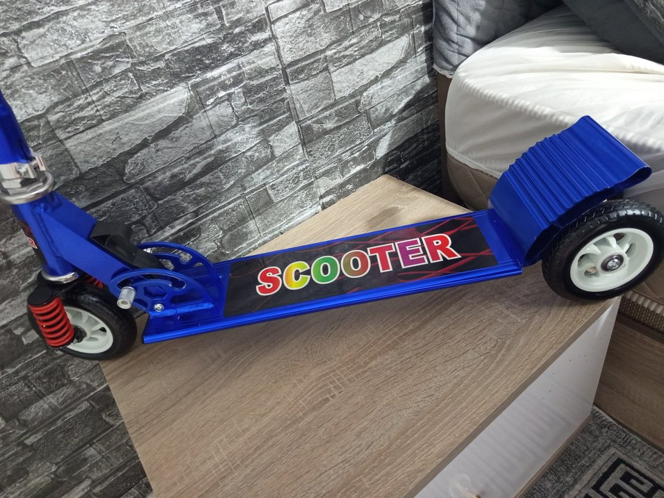 sıfır ürün. boyu ayarlanabilir. Renkli "SCOOTER" yazılı, dayanıklı tabanlı mavi çocuk scooterı. Renkli Mavi Scooterı. Katlanabilir 3 Tekerlekli. Çelik Metaldir.