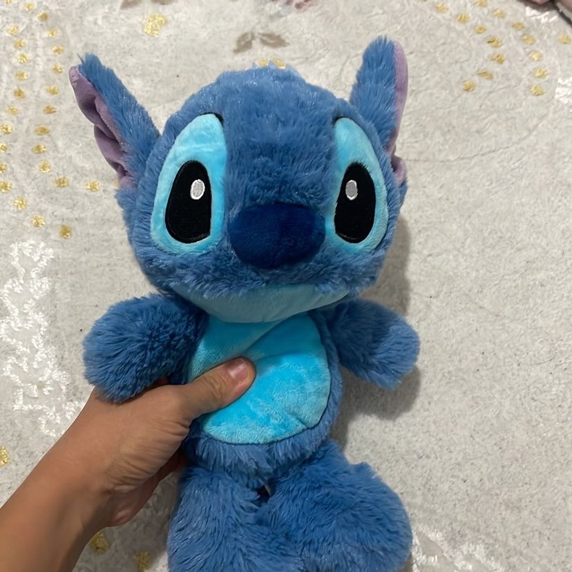 Yumuşak ve renkli mavi peluş oyuncak, büyük gözler ve detaylı kulaklara sahip, sarılmak için uygundur.