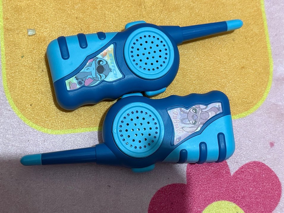 Renkli mavi su oyuncağı telsizler, çizgi film karakterli tasarıma sahiptir.