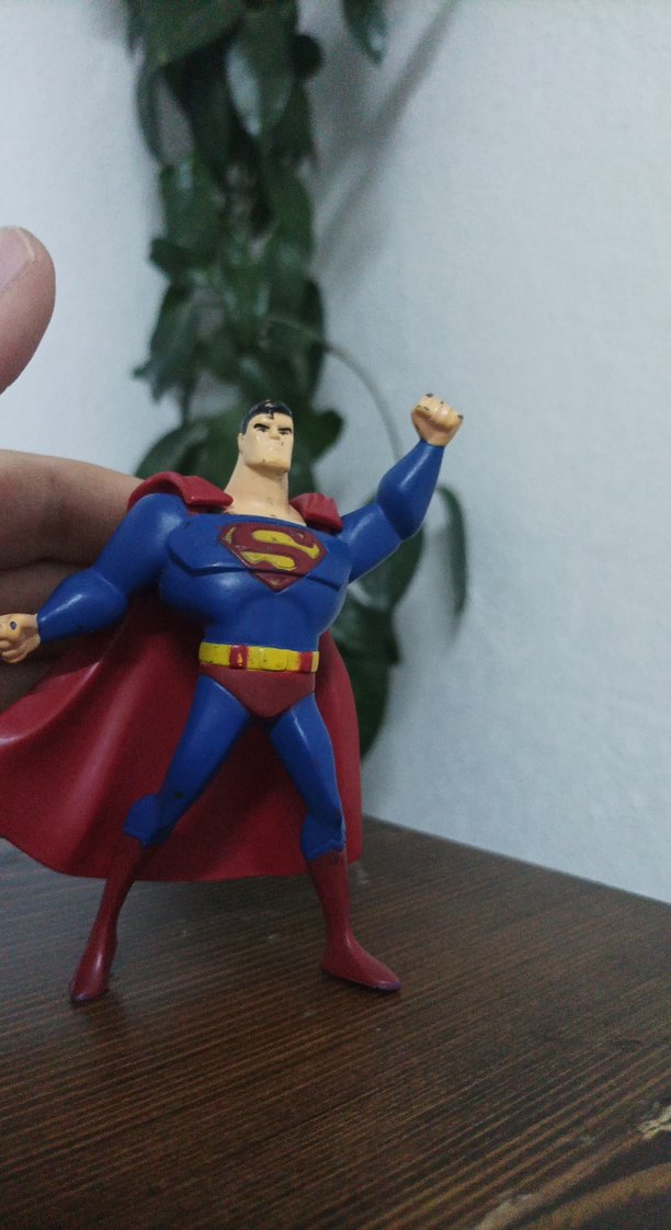 Bu renkli Süpermen aksiyon figürü, kırmızı pelerinli mavi kıyafeti ve detaylı tasarımıyla ikonik süper kahraman duruşunu yansıtıyor. ♂️