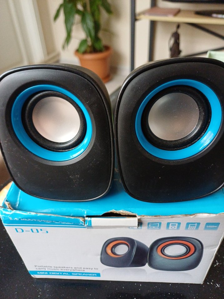 OYC D-05 model renkli, mavi detaylı taşınabilir hoparlörler müzik çalmak için uygundur. 1+1 laptop,masa üstü,tablet,camera hepsine takılabilir