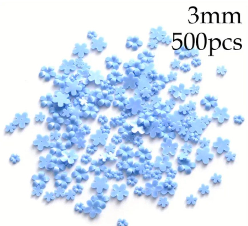 Renkli mavi çiçek desenli tırnak süsleri, küçük boyutlu ve detaylı tasarımlar için uygundur. Icinde yaklasik 500 adet vardir. Iade yoktur. Marka temsili.