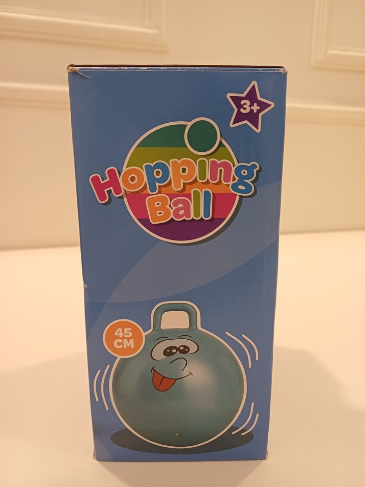 45 cm çapında, saplı renkli mavi zıplayan top, 3 yaş ve üzeri çocuklar için uygundur. Eğlenceli zıplama oyunu sağlar.