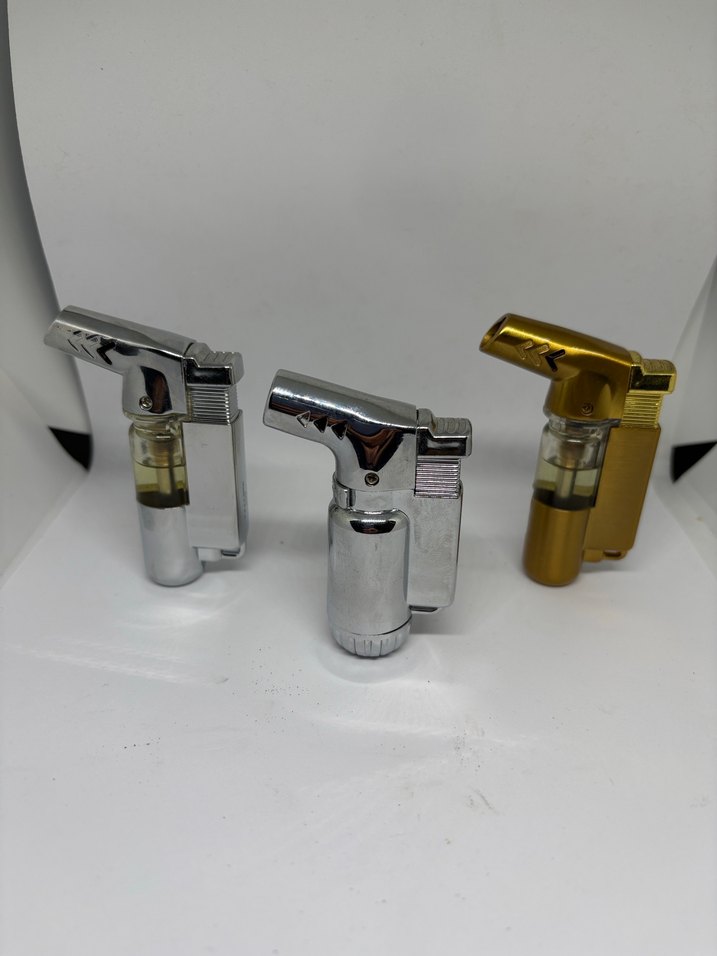 Altın ve gümüş renk seçenekleriyle metalden yapılmış renkli çakmak seti. Hediye için uygundur.