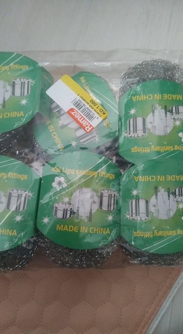 Yeşil baskılı etiketlere sahip, tencere ve tavaları temizlemek için renkli metal temizleyiciler.