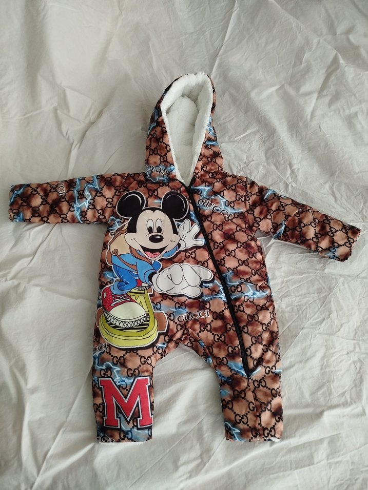 Renkli Mickey Baskılı Bebek Tulumu