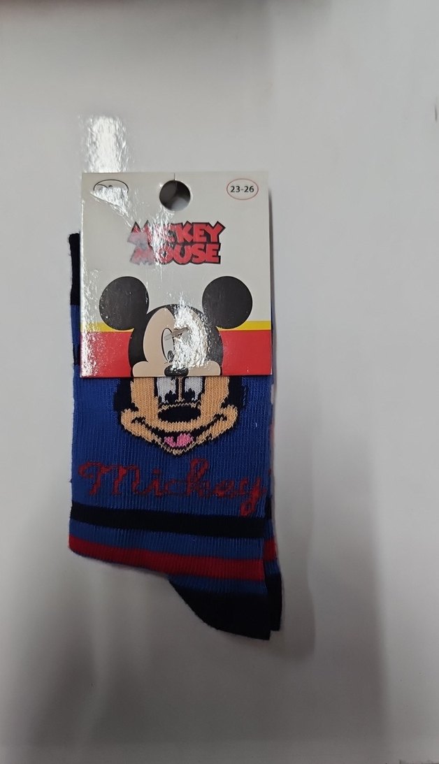 Baskılı Mickey Mouse desenli, renkli erkek çocuk çorapları, 23-26 numara. Rahat ve canlı renklerde günlük kullanım için uygundur.