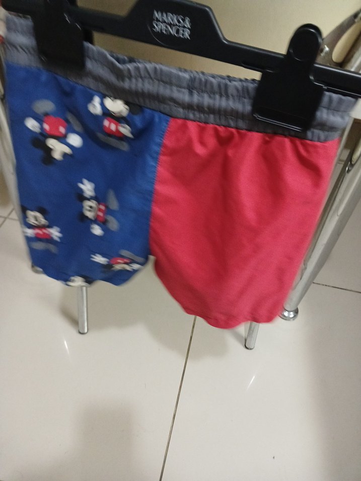 Disney natka, bir tarafı Mickey Mouse baskılı diğer tarafı kırmızı renkli erkek çocuk deniz sortu deforme yoktur yesyenidir