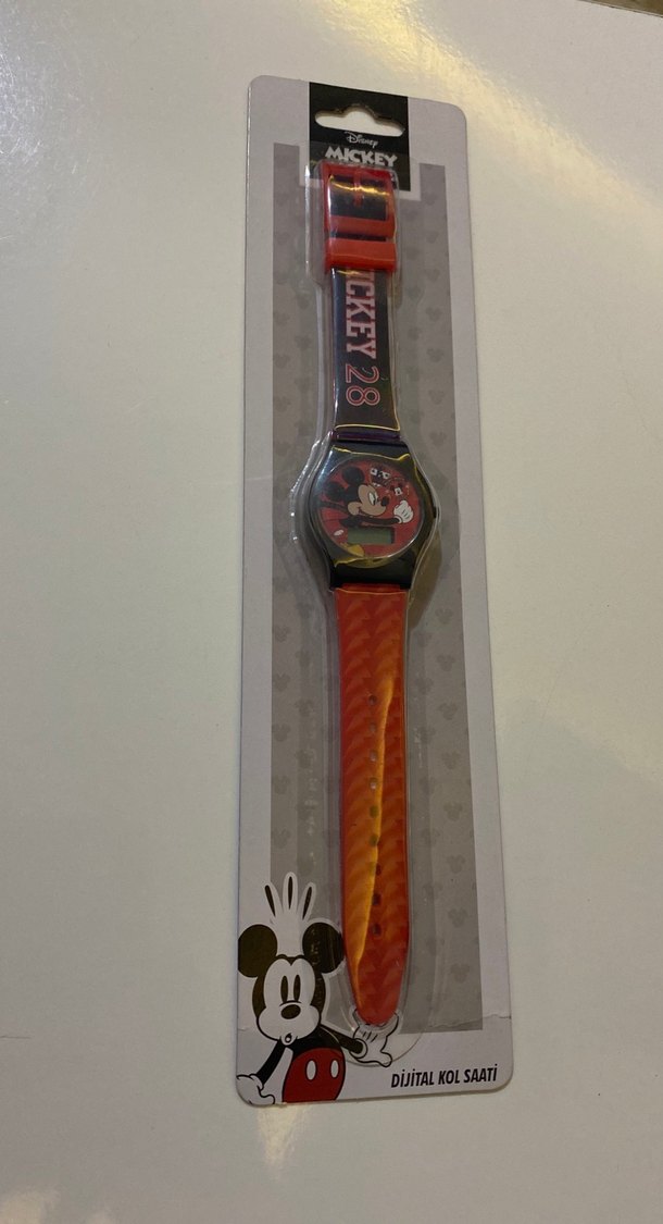 Renkli kayışlı, tokalı ve vintage Mickey Mouse temalı kol saati, pop kültür ve nostaljiyi birleştirir. ⌚
