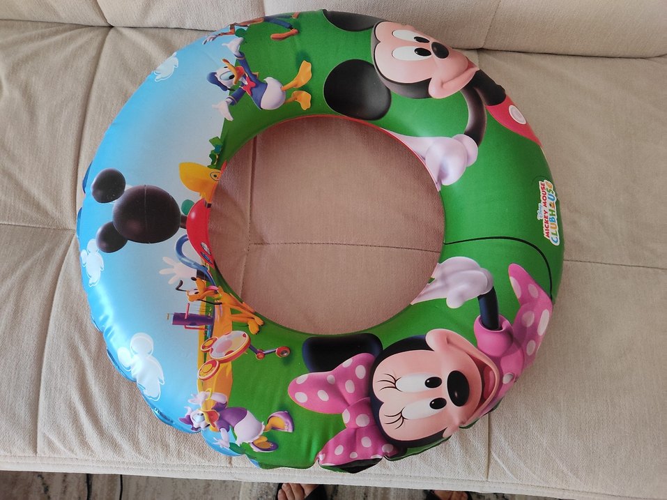 Renkli Mickey ve Minnie Mouse desenlerine sahip çocuk Deniz,havu, simidi.