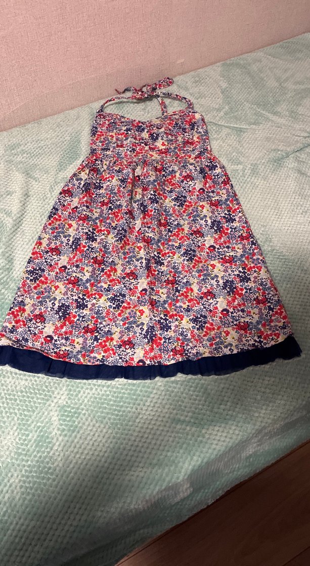 Renkli tie-dye deseni ve volanlı etek ucu ile bol kesim çocuk elbisesi