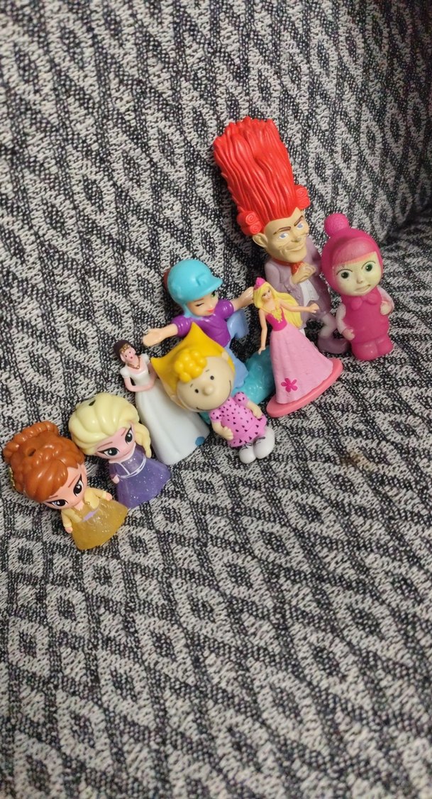 Farklı tarz ve kıyafetlere sahip renkli mini bebek figürleri seti. Her biri canlı renkler ve ayrı tasarımlar içerir.