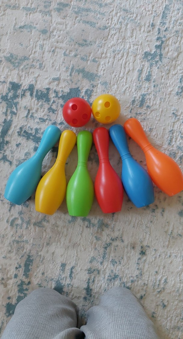 Altı renkli top ve iki renkte top içeren, renkli mini bowling seti. Eğlenceli ve taşınabilir yapısıyla iç mekan oyunları için uygundur.