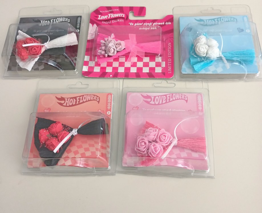 Pembe, mavi, siyah ve kırmızı renklerde küçük çiçek tasarımlı mini buketler. Küçük hediyelik olarak uygun. Kargo ücreti alıcıya aittir almak istediğiniz ürün için ilan açtıriniz