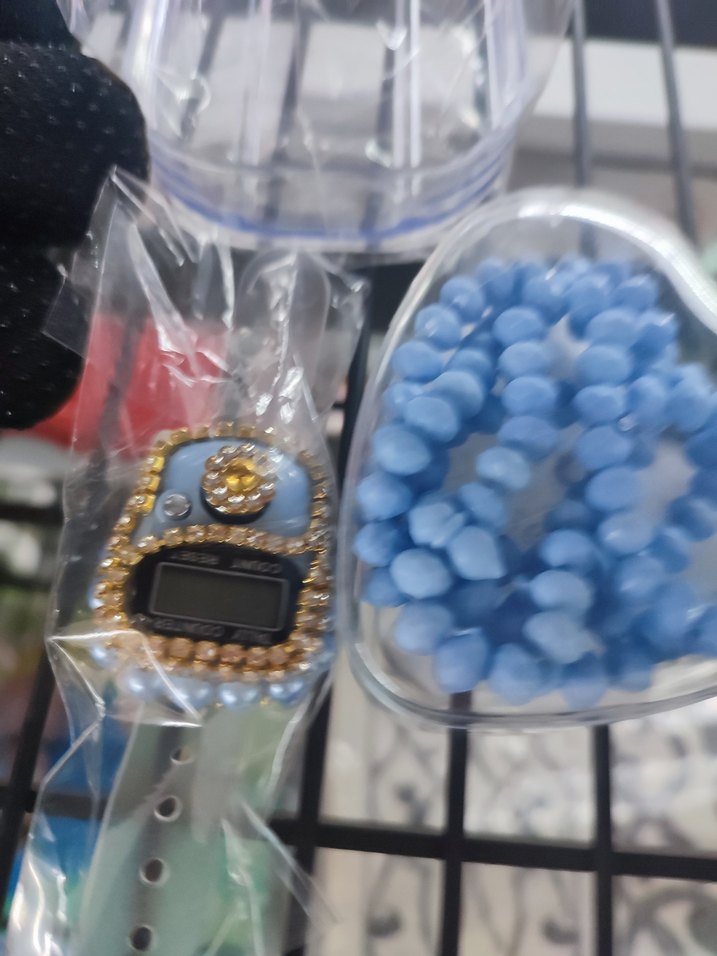 Renkli baskılı tasarıma sahip, kısa ve mini uzunlukta, mavi renkli dijital saat. Anne ve bebek takibi için uygun. ⏰