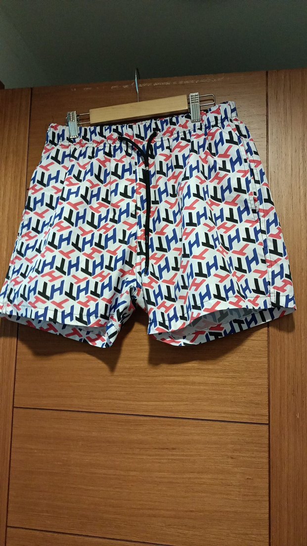 Renkli baskılı desenli, bol kesim ve lastikli bele sahip erkek deniz şortu, plaj için uygundur. ️